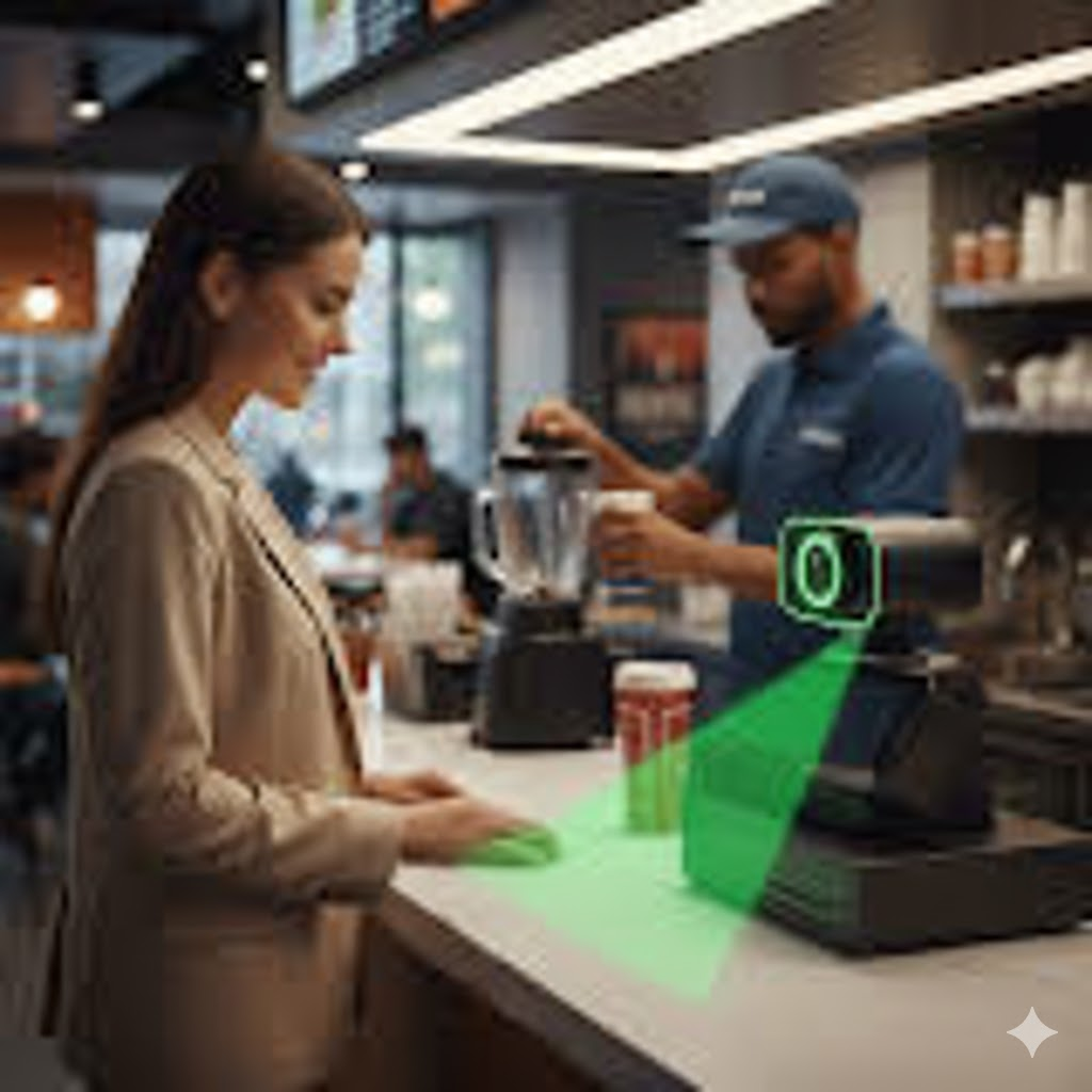 - The AI Cashier (Front Counter):"The AI Cashier sees the customer takes the order, and collects the payment at the point of service. She is a money-making machine with her upselling consistency. This is a Credit Card Only transaction powered by Fiserv high-security integration. Once the card is approved, the AI instantly sends the order to the KDS. From that moment, there is zero human involvement required until the point of delivery."